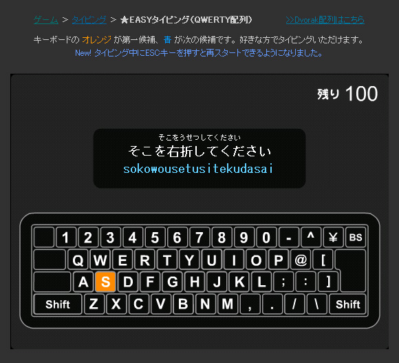 狙撃タイピング で遊んでいたときに何気に目に付いたのが、このEasyタイピングなのですが、この、Easyタイピングはそうした練習用にピッタリでした。