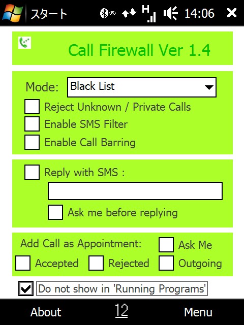 Windows Mobile で着信制限をするソフトはいくつか見かけましたが、“Call Firewall”は情報が少なかった割にあっさり使えたので、今でも愛用中です。